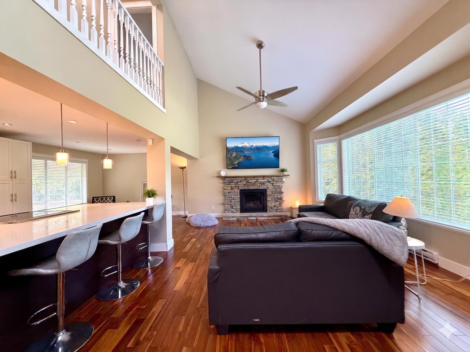 Bright, refined living in a peaceful and private pocket of Brackendale, set in a great family neighbourhood. This 3-bedroom, 3-bathroom, 2063 SF home features a vaulted living area with a stone gas fireplace and large windows bringing in natural light. The renovated kitchen includes stainless steel appliances and a wide eating bar, opening seamlessly to the dining and living areas. The south-facing backyard enjoys excellent sun and overlooks a natural water feature, creating a tranquil setting. Upstairs offers a generous primary bedroom and two additional bedrooms, with a double garage and 1100 SF crawl space providing ample storage. Thoughtful updates throughout complete the home, just minutes to trails, schools, and local amenities.